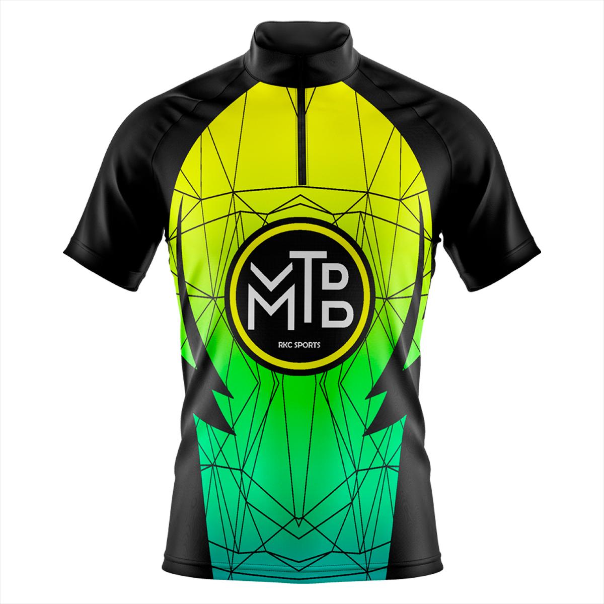 Camisa Ciclismo Masculina Manga Curta Rkc Sports Verde Amarela UV+