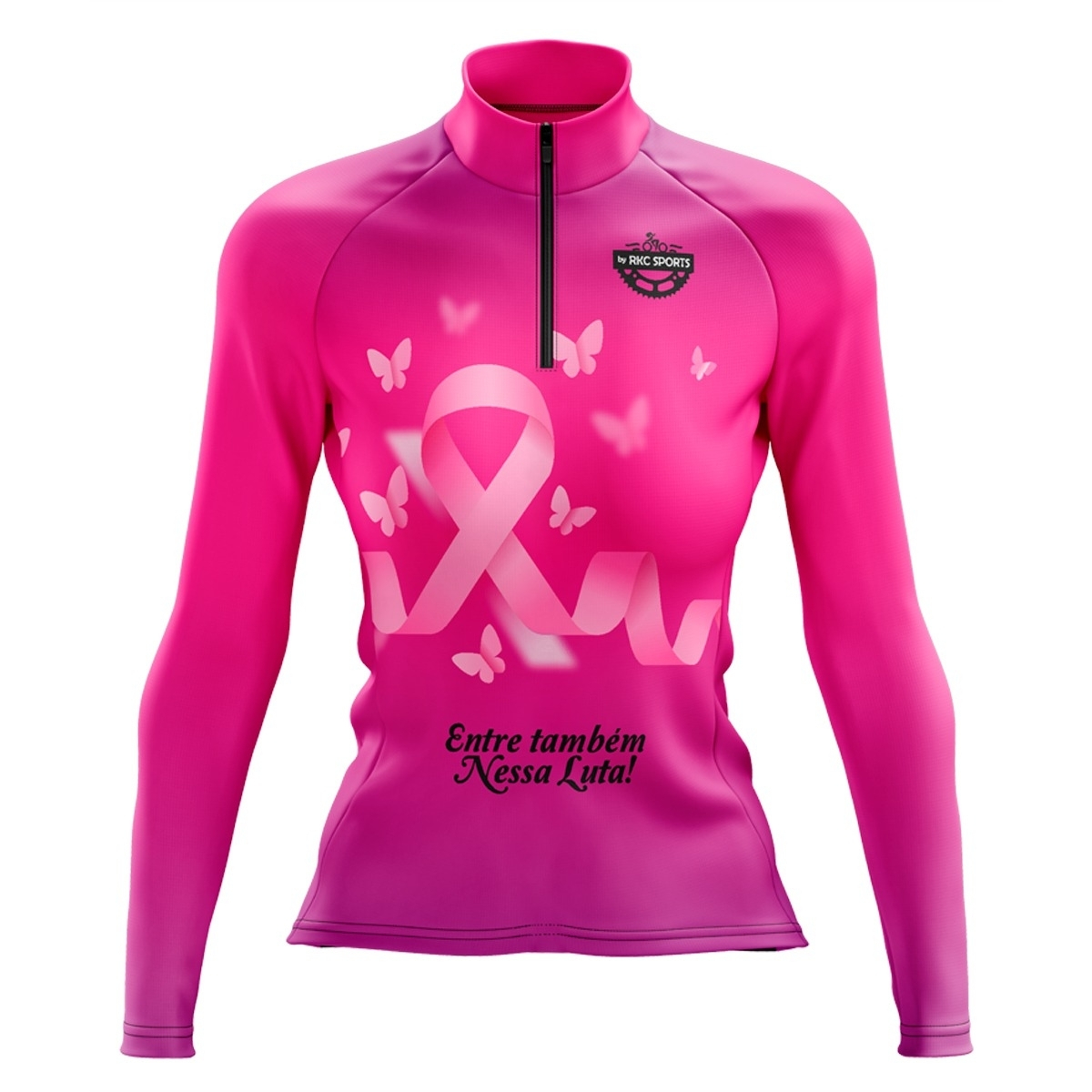 CAMISA DE CICLISMO FEMININA MANGA LONGA OUTUBRO ROSA ENTRE TAMBEM NESSA LUTA